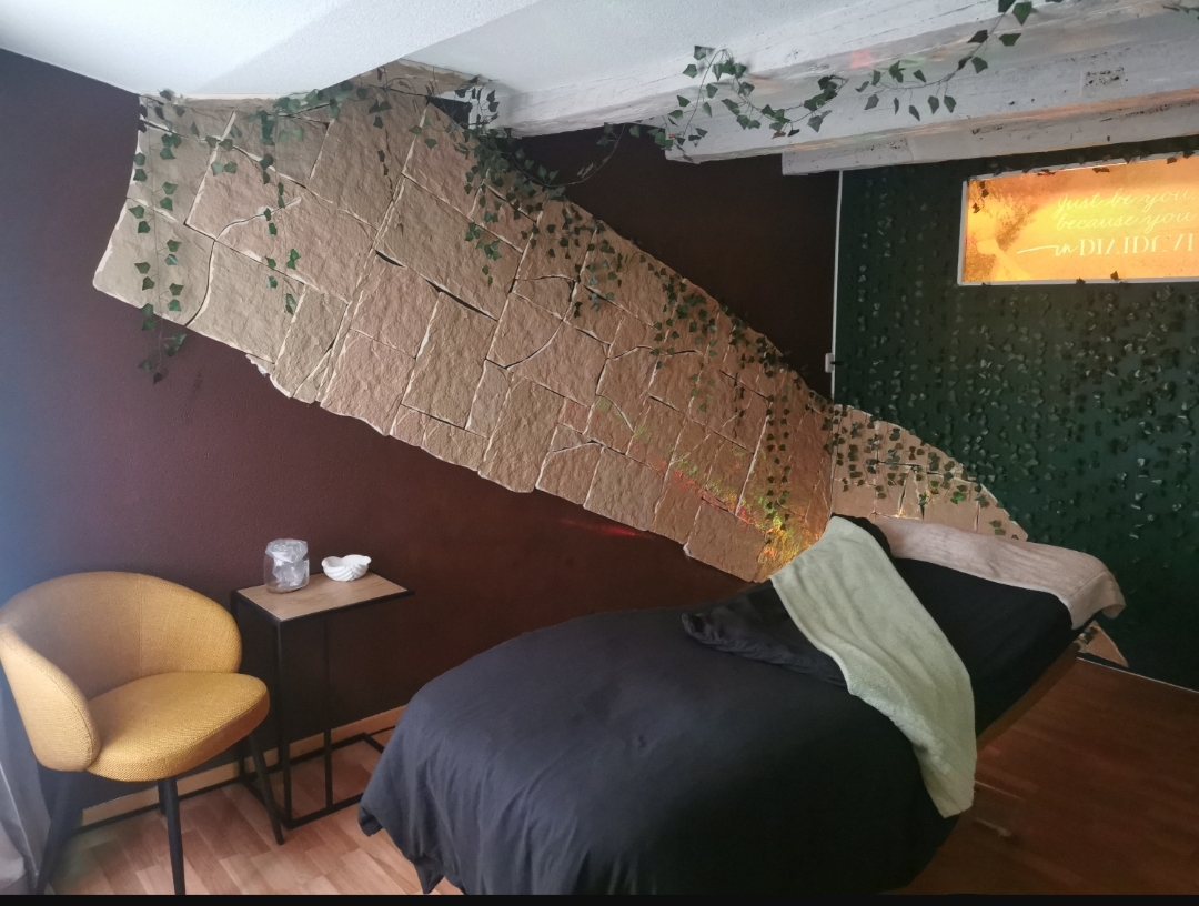 Warme Materialien, gedämpftes Licht und eine bewusste gestaltete Atmosphäre schaffen einen Ort, an dem der Alltag leiser wird und Entspannung Raum bekommt.